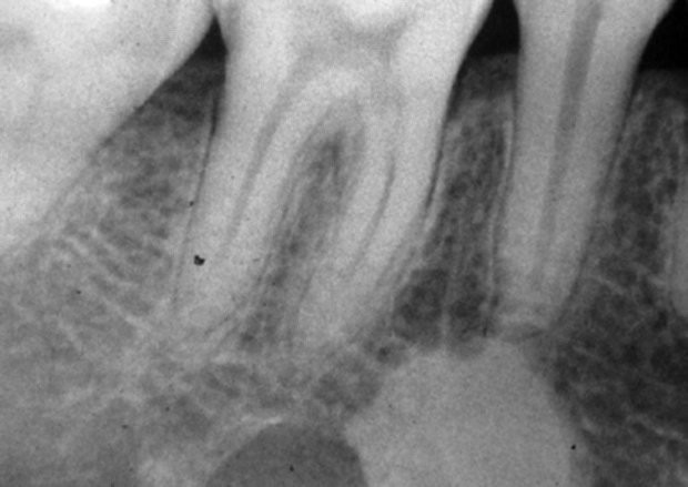 - Ακτινογραφικά απεικονίζεται σαν περιγεγραμμένη σκίαση με σαφή όρια σε οποιαδήποτε περιοχή της γνάθου.