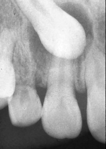 - Σαφώς περιγεγραμμένη διαύγαση γύρω από τη μύλη εγκλείστων ή υπό ανατολή δοντιών. Το φυσιολογικό εύρος του οδοντοθυλακίου κυμαίνεται κατά προσέγγιση από 1 μέχρι 3 χιλ, ενώ στους κυνόδοντες της άνω γνάθου μπορεί να φτάσει τα 5 χιλιοστά.