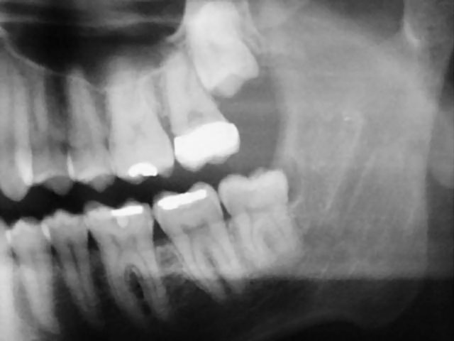- Σε χρόνιες καταστάσεις ακτινογραφικά μπορεί να παρατηρηθεί διαύγαση με ελαφρώς σκληρωτικό όριο άπω του ημιεγκλείστου δοντιού.